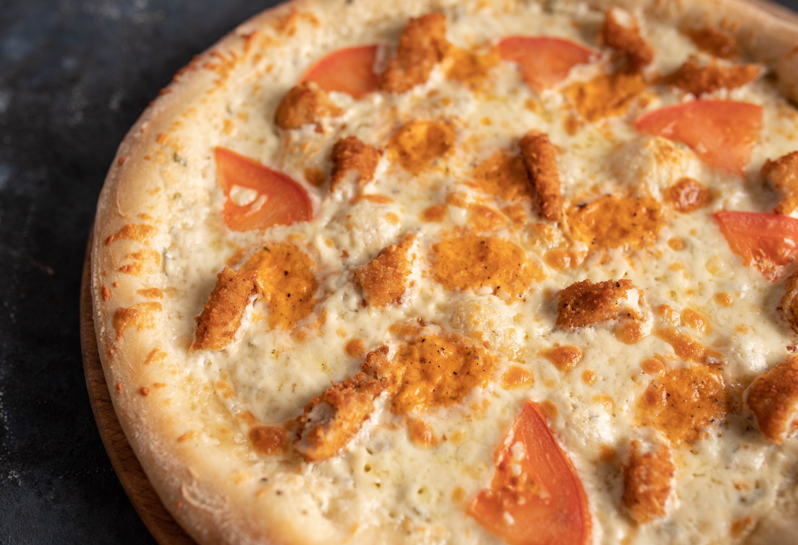 Сыр моцарелла, соус ранч, ветчина, куриные слайсы , черри, зеленый лук