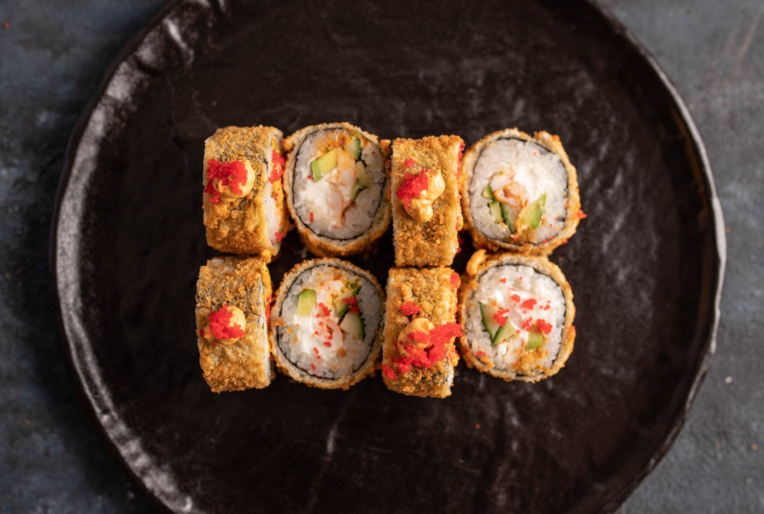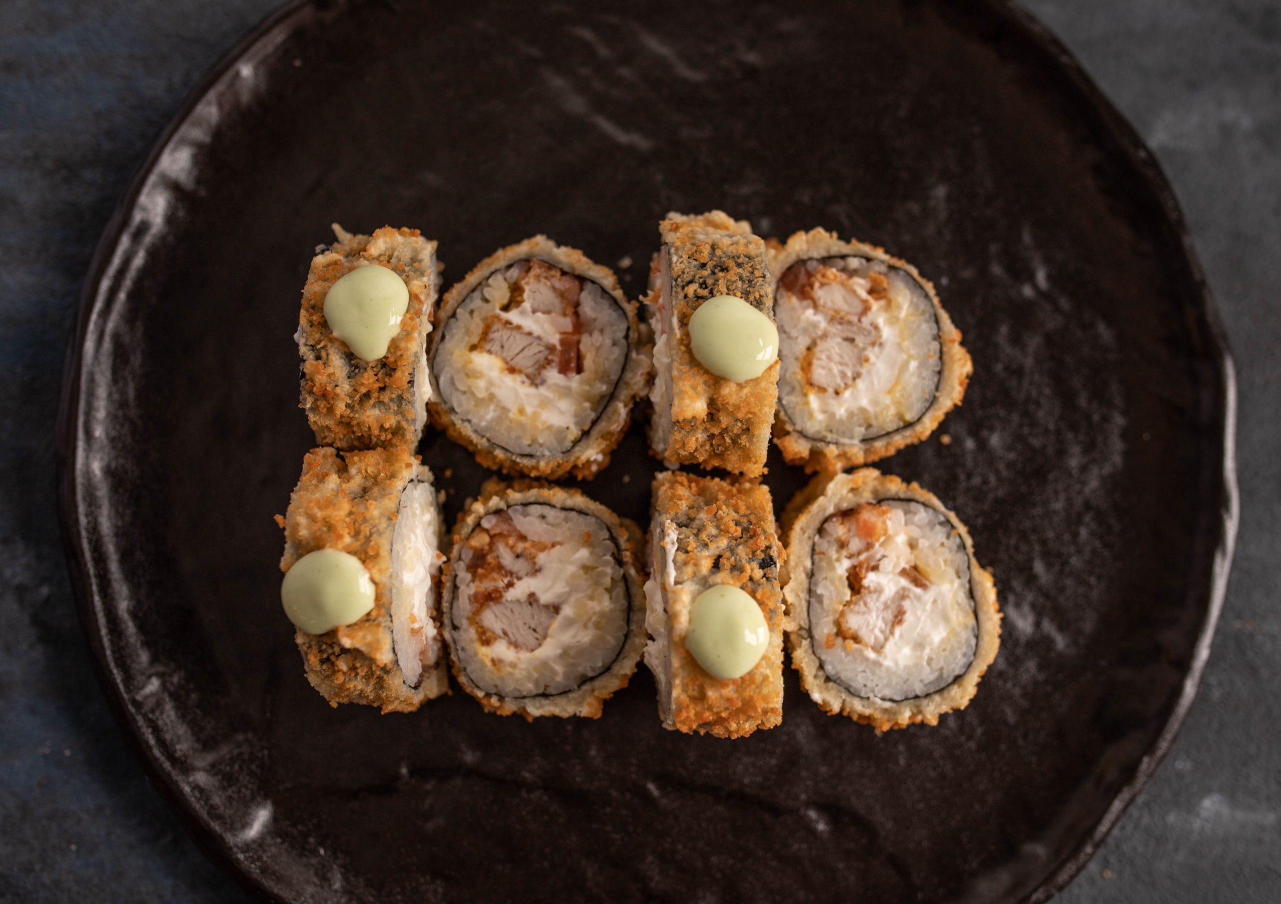 Говядина, яйцо, дайкон, лук красный, перец болгарский, лук фри, лук зеленый, чили, домашний майонез, гранат, кинза